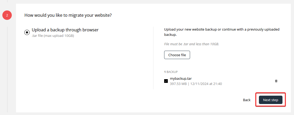לאחר סיום ההעלאה, יש ללחוץ על Next step.