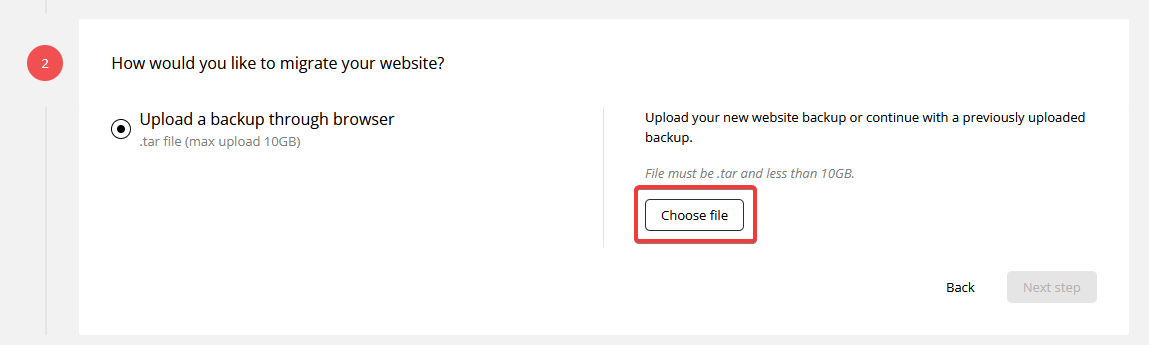 ד. יש ללחוץ על Choose file ולבחור את קובץ הגיבוי להעלאה מהמחשב שלכם.