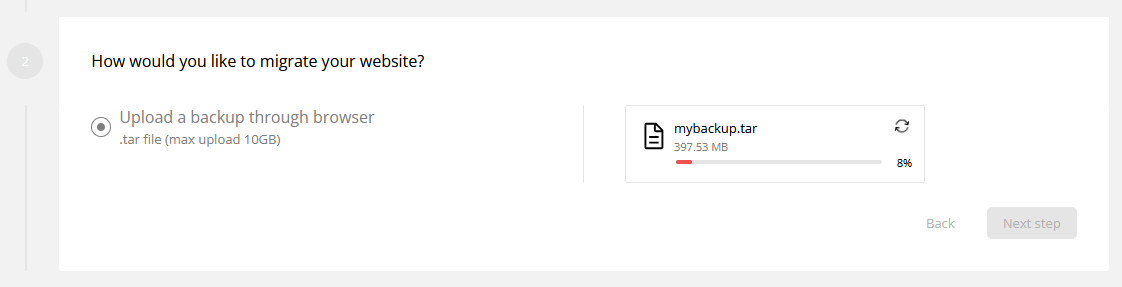 ניתן לייבא באופן עצמאי גיבוי מלא מאחסון מבוסס Cpanel, או Plesk.